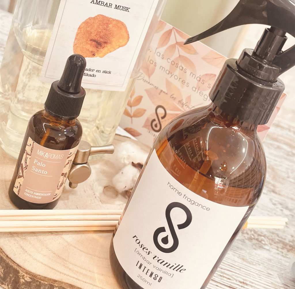 Tales son nuestros difusores en sticks – mikados – creados con aceites esenciales que perduran en el tiempo, velas aromáticas con diseños exclusivos, difusores de brumas que crean sensaciones de relax a la vez que decoran la estancia como una pequeña lámpara y pulverizables.